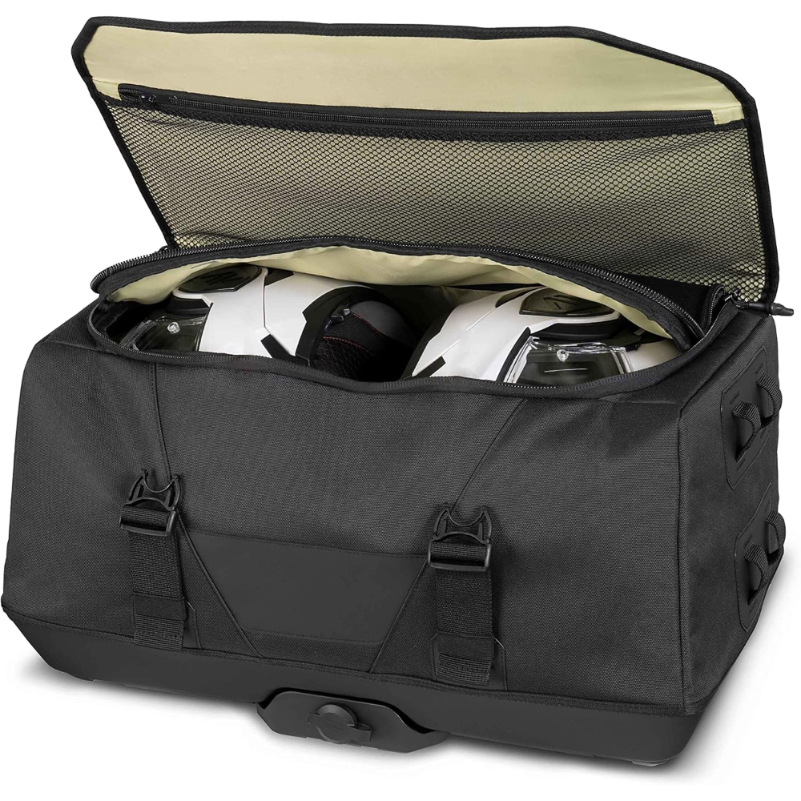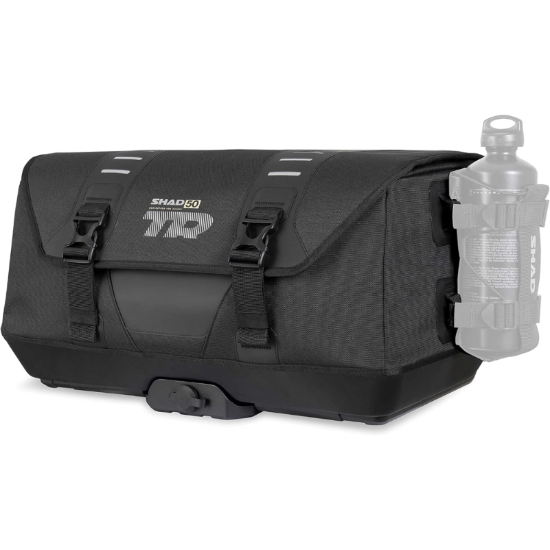 La Bolsa Trasera SHAD TR50 tiene una capacidad de 40 litros y está diseñada para el transporte de equipaje en motocicletas. Su estructura se compone de materiales específicos que permiten su instalación en diferentes modelos de motos compatibles. Incluye un sistema de anclaje que asegura una fijación adecuada al vehículo. La bolsa presenta un diseño que optimiza el espacio interno, permitiendo el uso eficiente del volumen disponible. Posee un sistema de cierre mediante cremalleras y hebillas que facilita el acceso al contenido. Las dimensiones permiten un ajuste en la parte posterior de la motocicleta, contribuyendo al equilibrio durante la conducción. Además, cuenta con elementos reflectantes que aumentan la visibilidad en condiciones de poca luz. La bolsa es impermeable, diseñada para proteger el contenido de la lluvia y otras inclemencias del tiempo. Su mantenimiento se realiza mediante limpieza con productos específicos para el cuidado de este tipo de material.